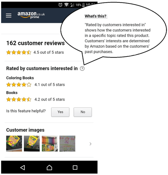 亚马逊英国站的Reviews根据客户兴趣进行分类