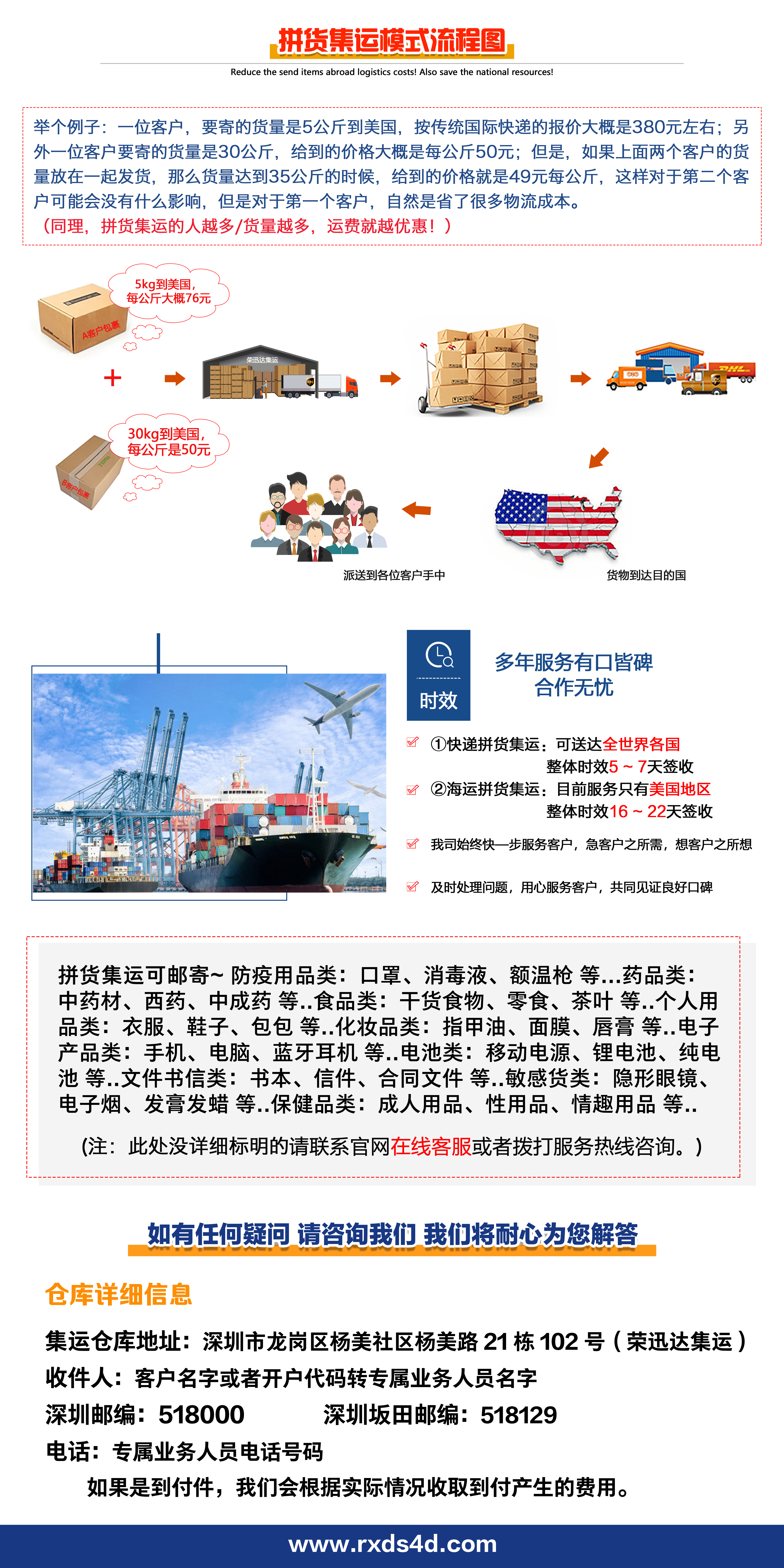 拼货集运服务一件代发服务深圳仓库香港仓库广州仓库东莞仓库
